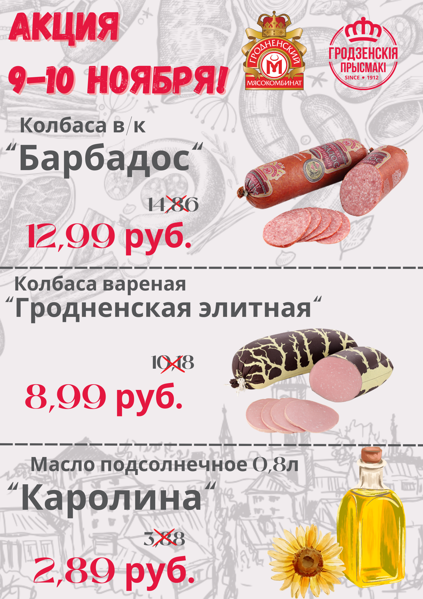 АКЦИЯ 9 - 10 ноября! - Фирменная сеть магазинов «Гродзенскiе прысмакi»