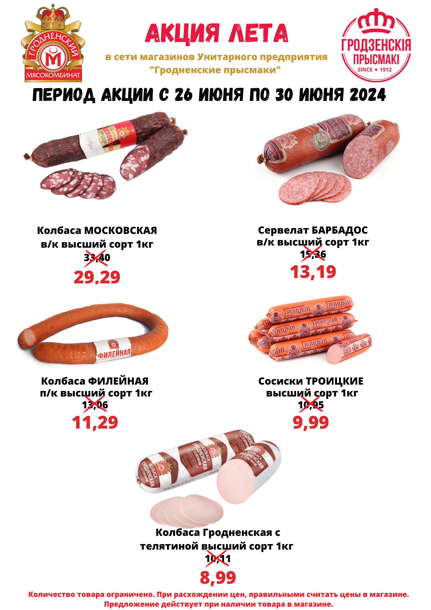 Июньские скидки в разгаре! - Фирменная сеть магазинов «Гродзенскiе прысмакi»