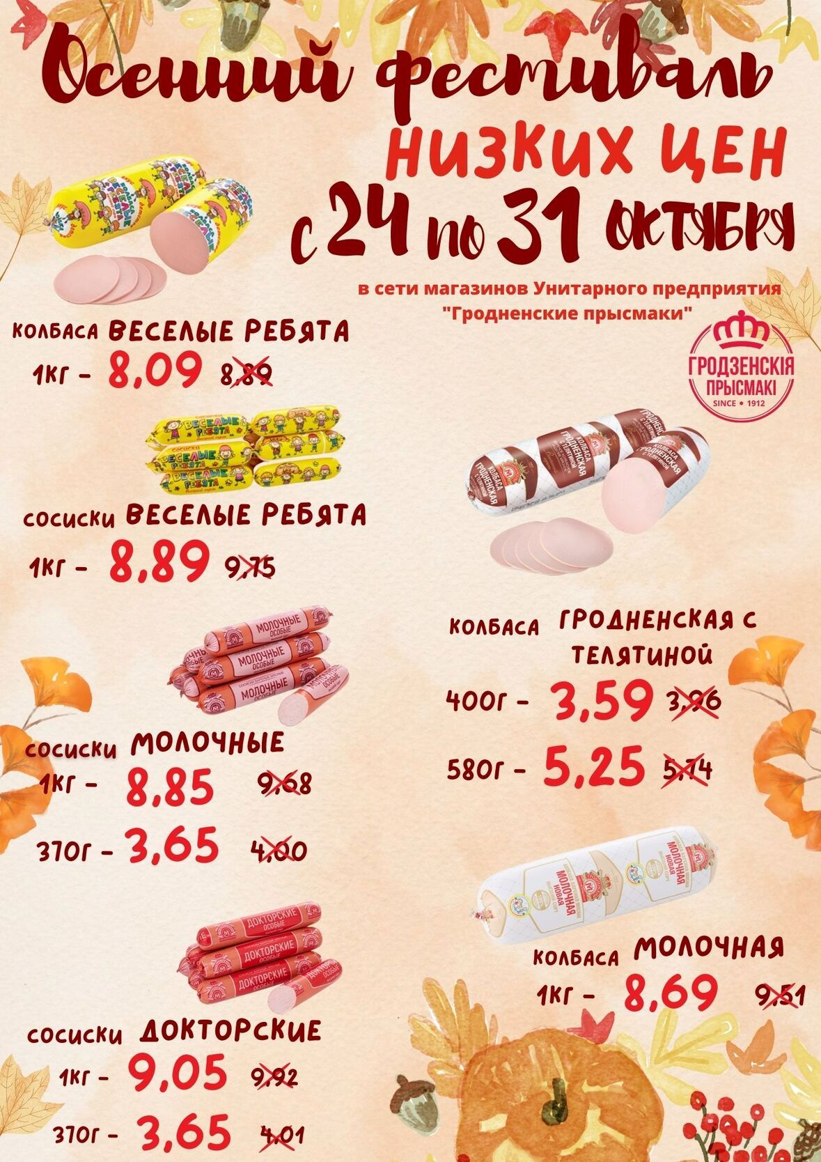 Осенний ценопад! С 24 по 31 октября! - Фирменная сеть магазинов «Гродзенскiе прысмакi»