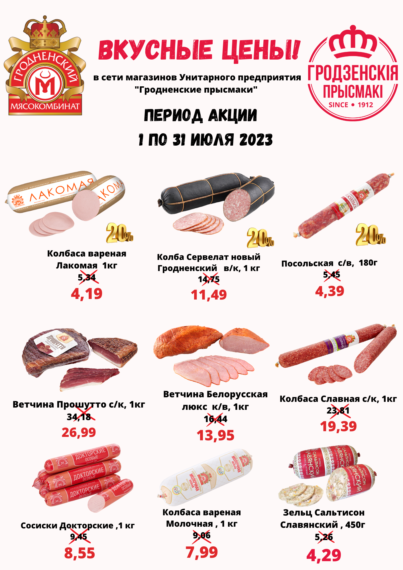 Жаркие цены ИЮЛЬ! - Фирменная сеть магазинов «Гродзенскiе прысмакi»